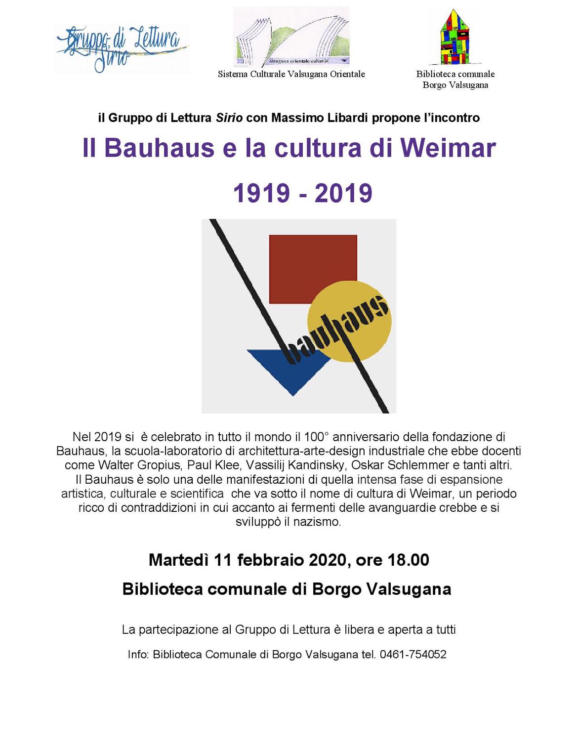 Nell'incontro del Gruppo di lettura di oggi Massimo Libardi illustrerà il Bauhaus e la cultura di Weimar.