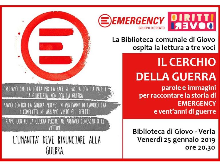 E’ un testo dei registi/attori Mario Spallino e Patrizia Pasqui scritto per tre lettori che, accompagnati da immagini e clip audio, si alternano, rappresentando l'Associazione o le voci di esperti, di vittime, di gente comune. Narrando le attività e le iniziative di EMERGENCY, la lettura ricorda cosa è successo nel mondo dal crollo delle Torri Gemelle a oggi e che i conflitti armati non sono mai una soluzione. Nel solco delle iniziative legate al 70° anniversario della Dichiarazione universale dei diritti dell’uomo – Diritti e Doveri – una riflessione sul diritto alla pace.