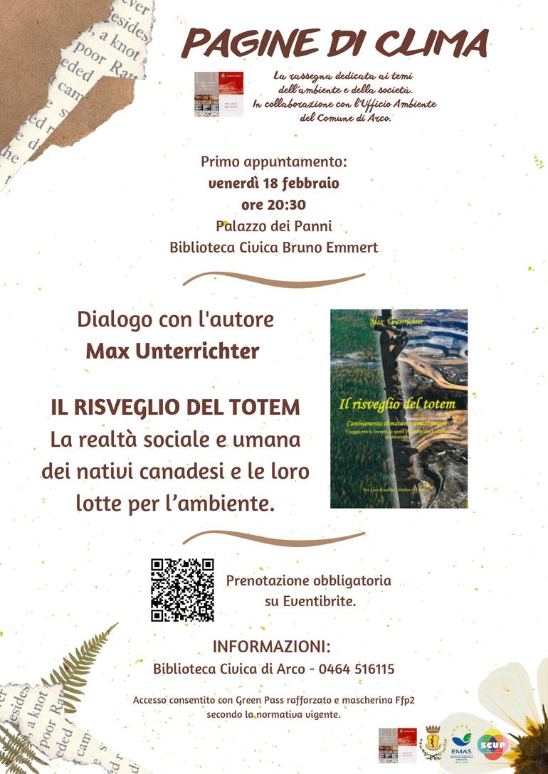 Max Unterrichter presenta il libro "Il risveglio del totem", in cui si approfondisce la realtà sociale e umana dei nativi canadesi e le loro lotte per l'ambiente.