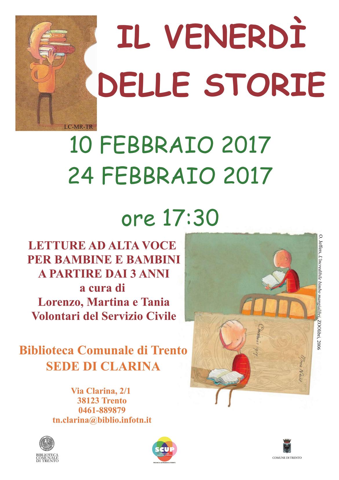 I volontari del servizio civile terranno delle letture ad alta voce per tutti i bambini dalle 17:30 alle 18:30.