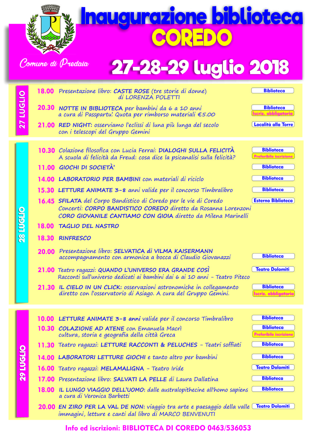 organizzazione: Biblioteca pubblica intercomunale di Predaia. Taio