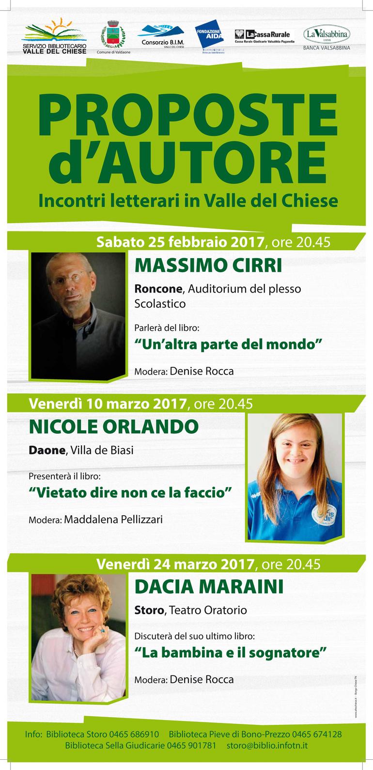 L'iniziativa si inserisce nelle "Proposte d'autore" promosse dal Servizio bibliotecario Valle del Chiese e dal Comune di Valdaone.