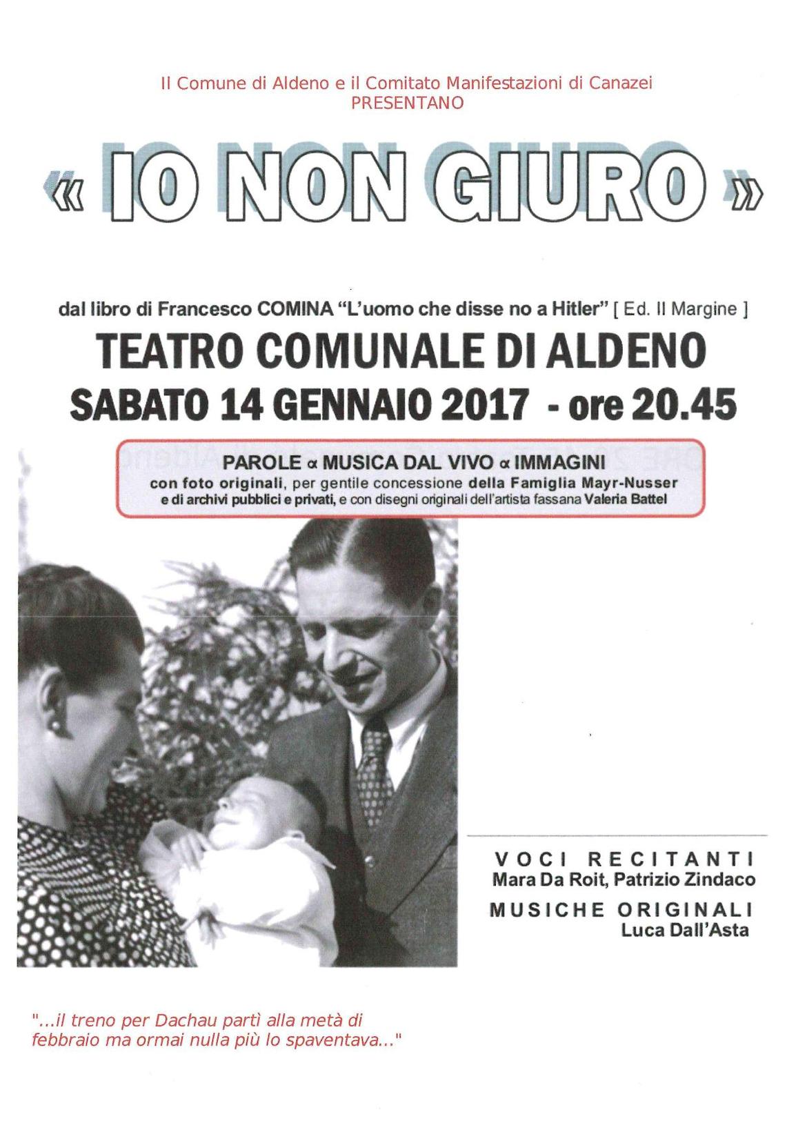 Lo spettacolo racconta le vicende del contadino sudtirolese che rifiutò di giurare a Hitler, pronto ad affrontare le conseguenze del suo atto.