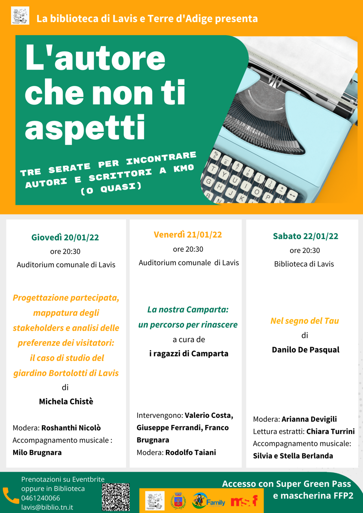 La biblioteca di Lavis e Terre d'Adige organizza tre serate d'incontro con autori locali, durante le quali gli scrittori presenteranno i propri libri ed il pubblico potrà interagire con loro.