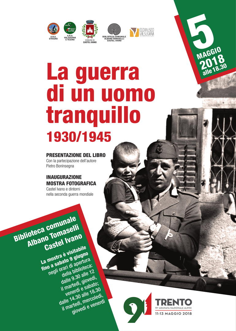 Pietro Boninsegna ha pubblicato i diari e le fotografie dello zio Mario Andreatti, capitano del 56° Rgt Marche durante la Seconda guerra mondiale. La presentazione del libro è stata inserita nel calendario degli eventi della 91a Adunata nazionale degli Alpini e sarà corredata dalla mostra di fotografie, che mostrano alcuni scorci di Strigno e dintorni del 1940. La mostra sarà visitabile, presso la Biblioteca, dal 5 maggio al 9 giugno negli orari di apertura della stessa.