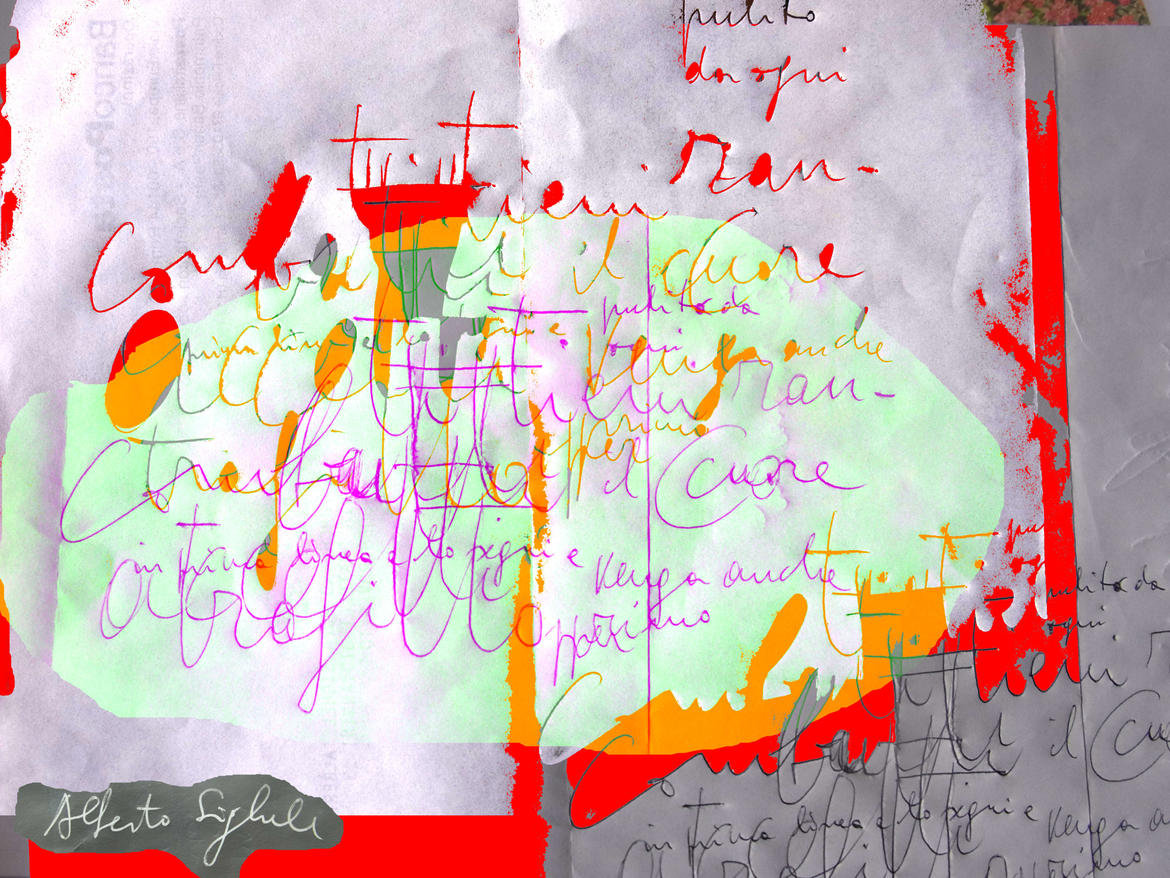 Perché la Pittura Fonetica? La mostra vuole convincere dell’attualità del proprio ruolo. Già è fusione di due sensi la vista e l’udito, ma rincorre gli altri, il tatto nella scelta dei materiali e nella ricerca anche minima del rilievo, l’odore nell’insistenza sul corpo e la fisicità delle immagini, il gusto nel masticare delle parole per digerirle nei suoni e nei significati, per sfociare nella fusione dei sensi, all’anima, dove punta il messaggio. Ma è un ritorno ai fondamentali con gli strumenti della modernità. La pittura fonetica potrebbe essere vista come una imitazione della tecnica pubblicitaria di oggi. Prende quel che vede e la circonda e se ne appropria, lo utilizza: quello che tutti fanno oggi con internet. Importante è il senso della trasformazione, il senso che noi diamo alle cose….
