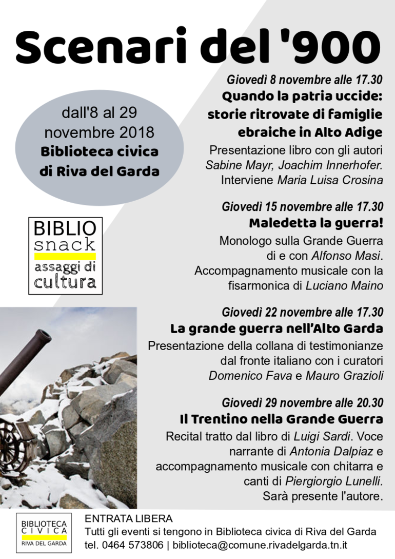 Recital tratto dal libro di Luigi Sardi. Voce narrante di Antonia Dalpiaz e accompagnamento musicale con chitarra e canti di Piergiorgio Lunelli.
