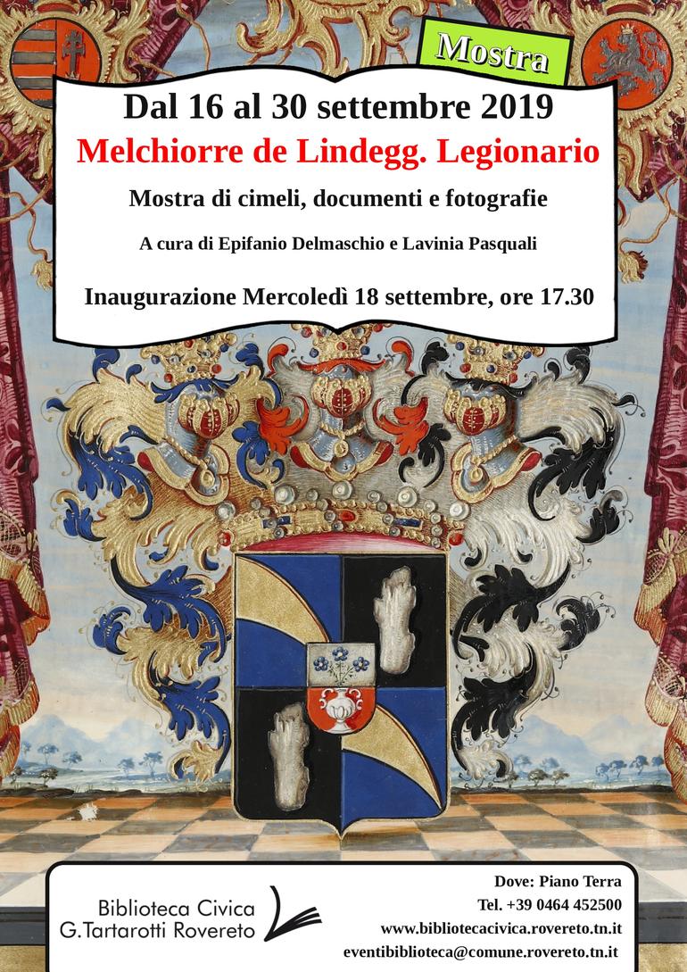 La mostra raccoglie una vasta selezione di documenti e oggetti provenienti dall’archivio famigliare. Testimonianze e tracce di vita personale, riguardanti in particolare la vita di Melchiorre, ma anche la memoria storica di una comunità, attraverso la vicenda secolare della famiglia roveretana dei de Lindegg.