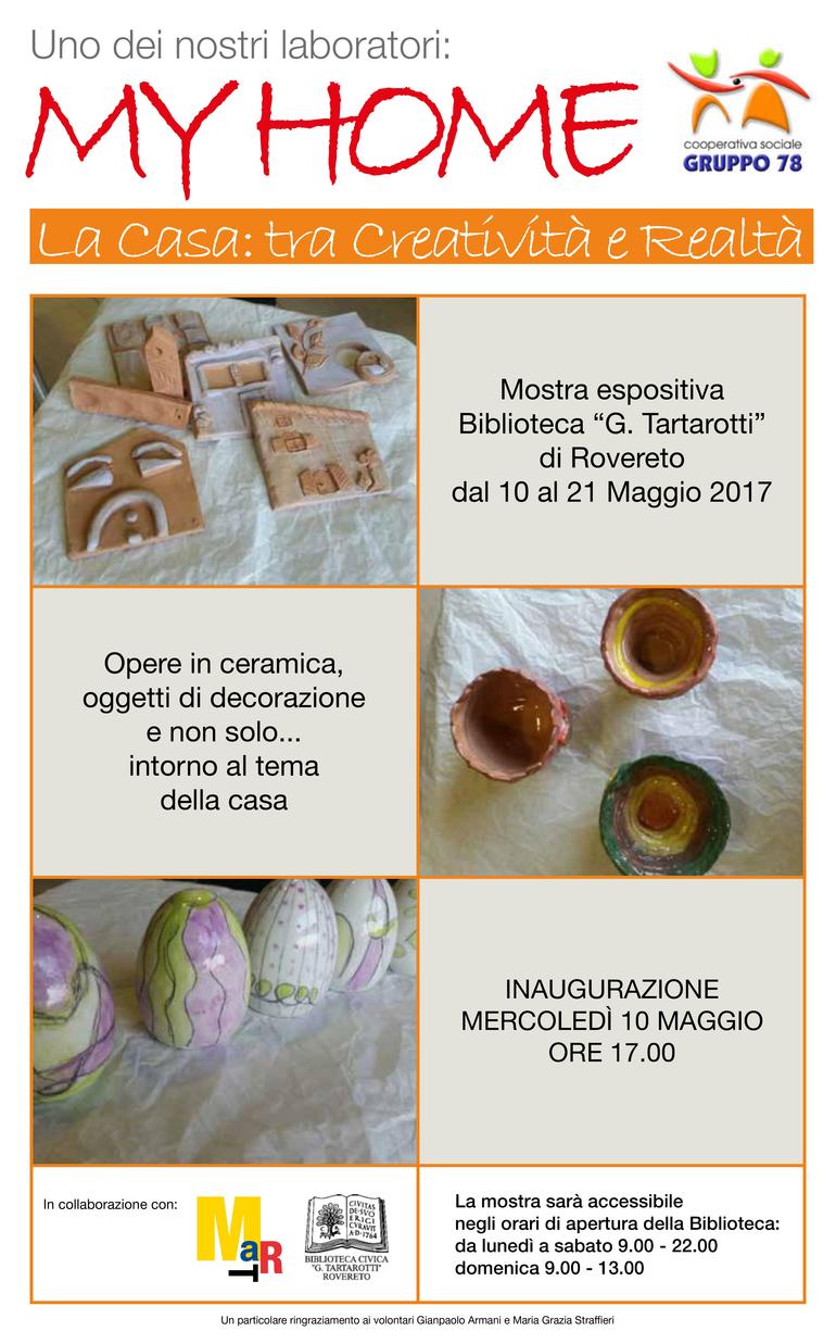 L’organizzazione di questa mostra, presso lo spazio espositivo della Biblioteca civica "G. Tartarotti" di Rovereto, ha l’obiettivo di trasformare i manufatti dei partecipanti in strumenti per sensibilizzare e testimoniare all’esterno e alla comunità territorio l’esperienza realizzata. L’ altro aspetto da considerare è la parte emotiva delle persone che hanno partecipato all’attività, che avranno l’occasione di essere protagoniste di questo evento attraverso le loro opere, sperimentando la possibilità di ampliare la propria autostima e dignità ed il loro senso d’appartenenza e partecipazione attiva oltre che al gruppo di My Home alla comunità che ospita e visita la mostra.