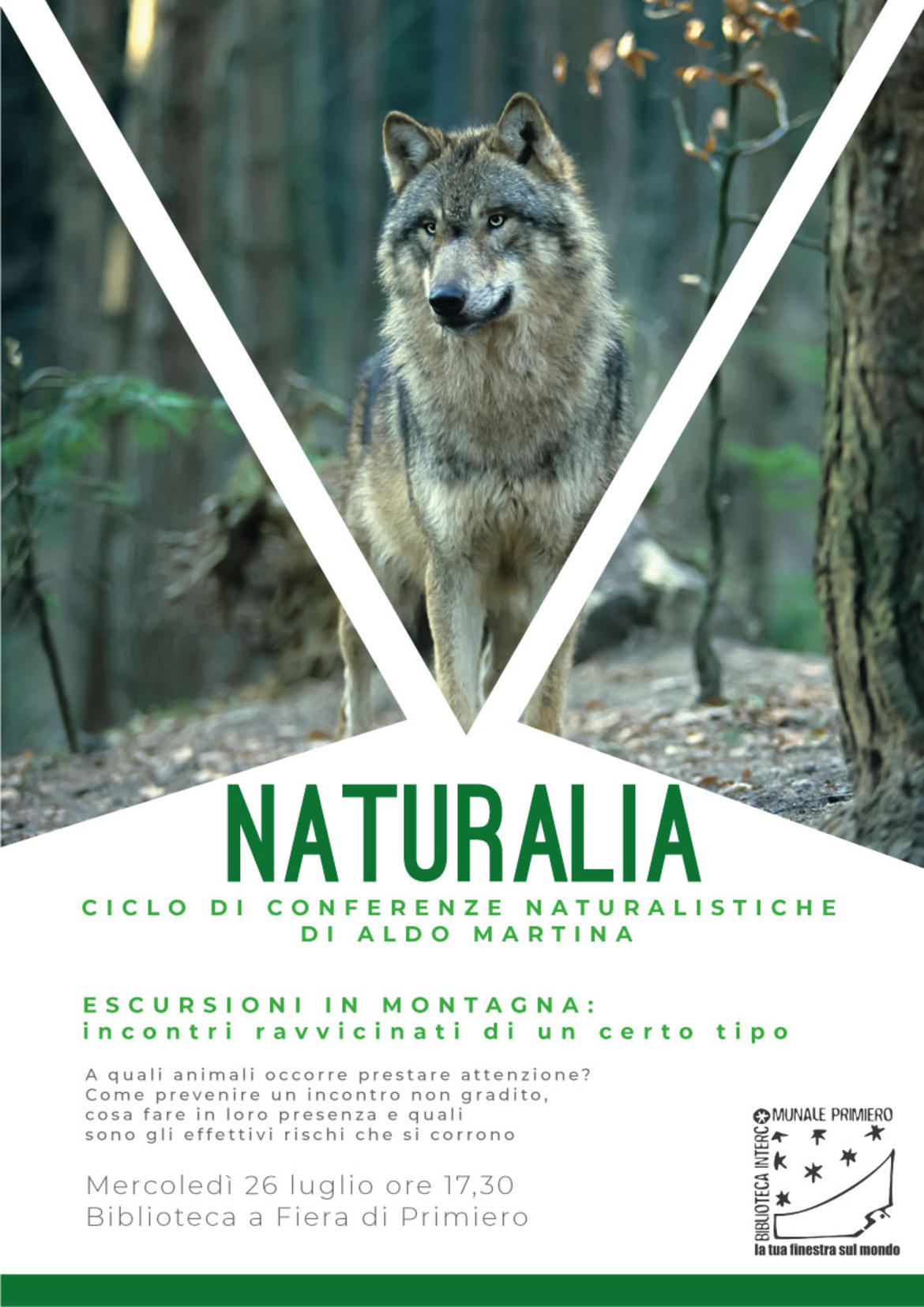 L’oggetto dei tre incontri verte su vari nostri coinquilini di Primiero e Martina, come è suo solito, ci racconterà di alcuni di essi: animali comuni ma ignorati, come gli uccelli, altri poco noti ma molto diffusi grazie ai loro super poteri, come i pipistrelli; ma l’estate è anche la stagione in cui si concentra la maggior parte delle nostre escursioni e passeggiate in montagna, d’altronde i panorami e la natura che ci circondano rappresentano uno stimolo quotidiano e irrinunciabile per tutti noi, tuttavia il pensiero di fare determinati incontri può talvolta porre un limite a questo piacere, proprio su questo aspetto la prima conferenza del ciclo NATURALIA è dedicata alla conoscenza di piccoli e grandi animali cui è conveniente prestare un minimo di attenzione.