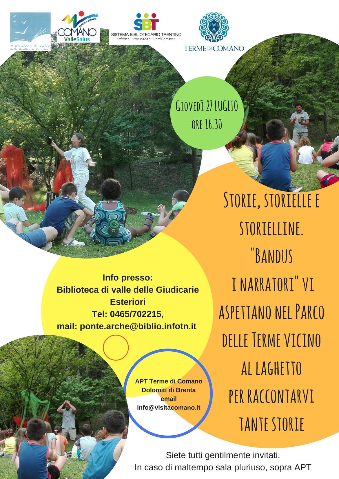 Bandus i narratori vi aspettano al parco delle Terme per raccontarvi tante storie, storielle e storielline