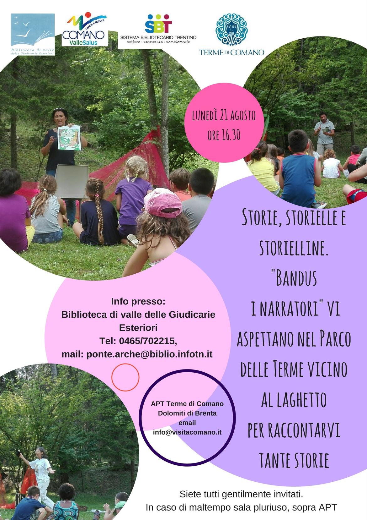 Bandus i narratori vi aspettano al parco delle Terme per raccontarvi tante storie, storielle e storielline