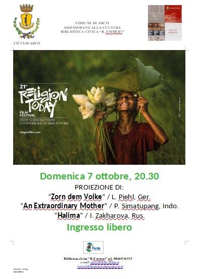 Nell'ambito della Biblioteca per la Pace 2018, la biblioteca civica di Arco ospita una delle proiezioni del Religion today film festival, il primo festival internazionale e itinerante di cinema delle religioni per una cultura della pace e del dialogo tra persone, popoli, fedi e culture.