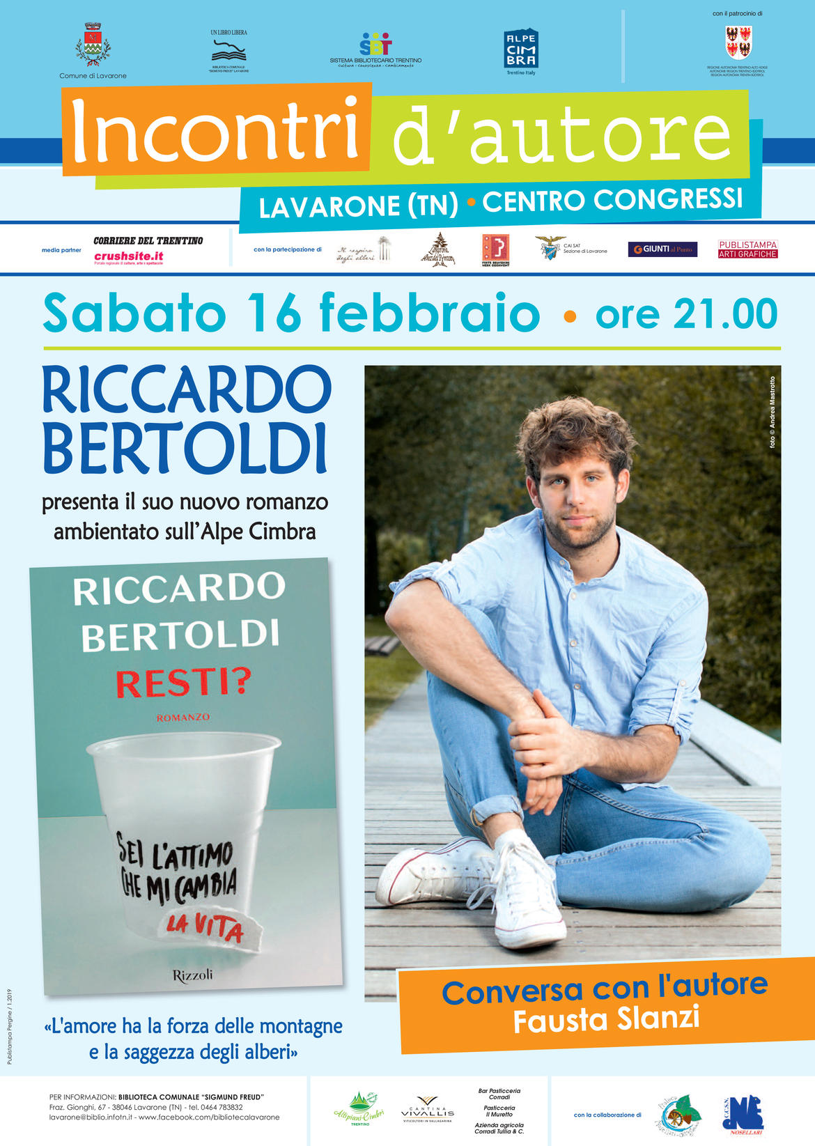 Prima presentazione pubblica del nuovo libro di Riccardo Bertoldi dal titolo Resti?. L'autore sarà intervistato dalla giornalista Fausta Slanzi.