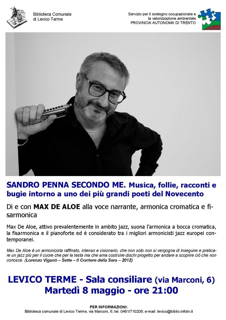 Serata su uno dei più grandi poeti del Novecento di e con Max De Aloe, alla voce narrante, armonica cromatica e fisarmonica.