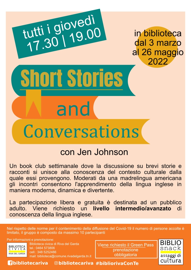 Un book club settimanale dove la discussione su brevi storie e racconti si unisce alla conoscenza del contesto culturale dalla quale essi provengono. Moderati da una madrelingua americana gli incontri consentono l'apprendimento della lingua inglese in maniera moderna, dinamica e divertente.