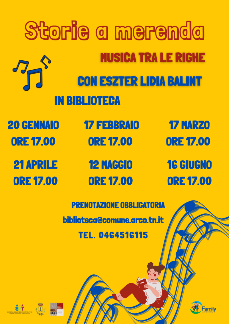 Tornano le Storie a merenda! Anche in questi nuovi appuntamenti del 2022 le storie saranno accompagnate dalla musica: Eszter Lidia Balint proporrà l'interpretazione di fiabe o storie e giochi musicali che coinvolgeranno grandi e piccini.