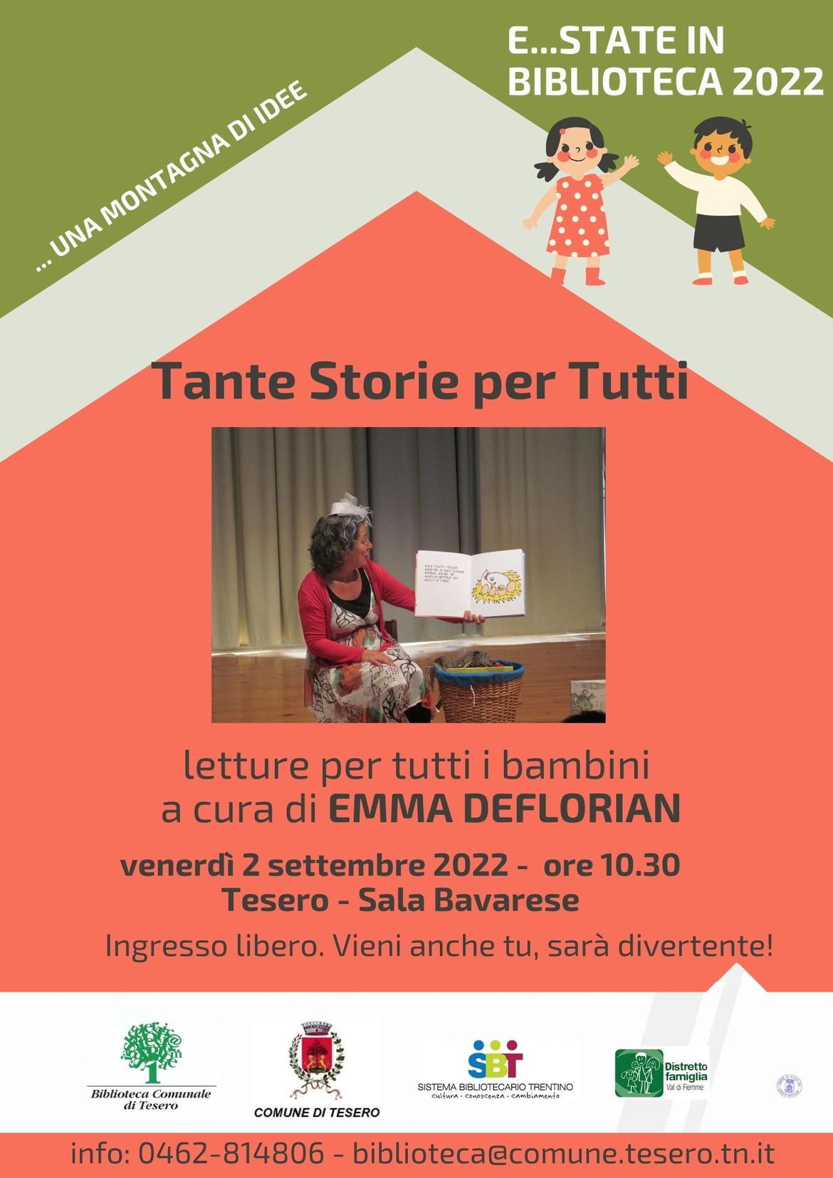 Sarà piacevole passare un po’ di tempo insieme ad ascoltare Emma che, grazie alla sua lunga esperienza di narrazioni e letture, riesce a divertire i bambini (e anche i grandi) e a trascinarli nel magico mondo delle storie.