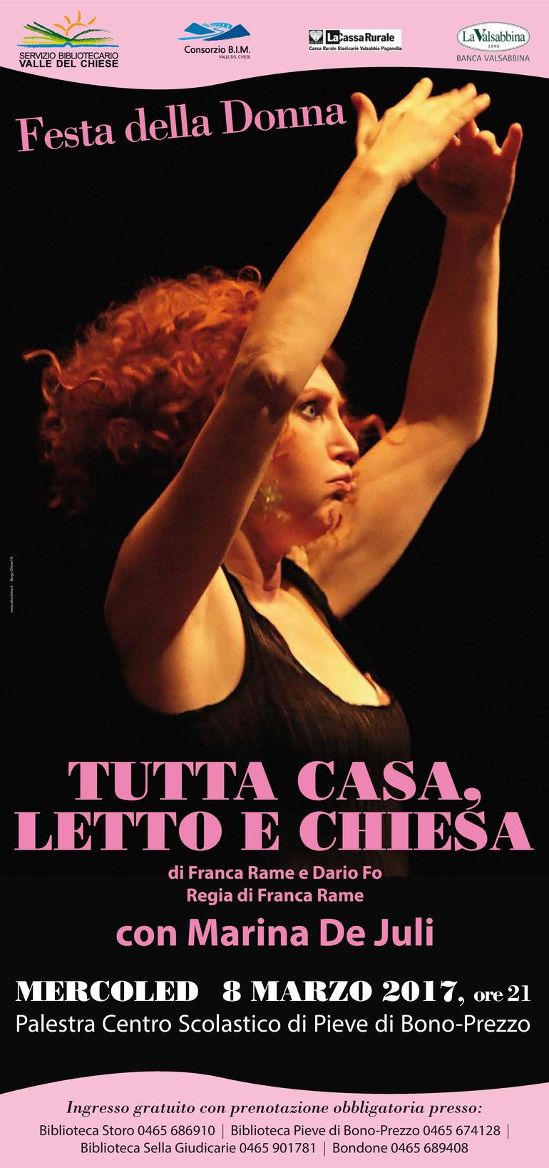 In occasione della Festa della donna il Servizio bibliotecario Valle del Chiese propone lo spettacolo di Franca Rame e Dario Fo con Marina De Juli