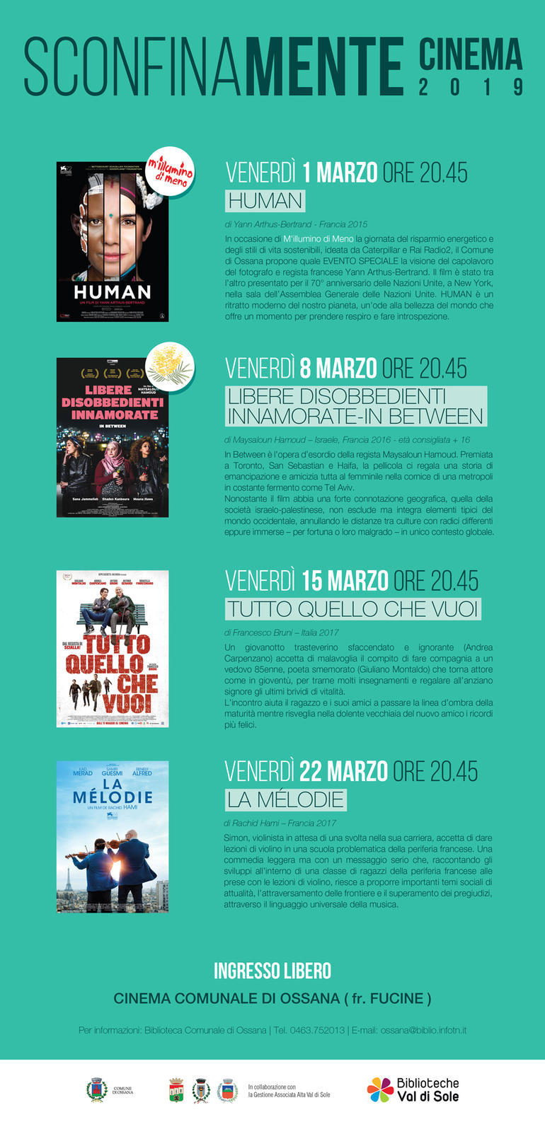 Terzo film di SconfinaMente cinema: marzo 2019, la cinerassegna promossa dal Comune di Ossana in collaborazione con i comuni di Peio, Vermiglio, Pellizzano e le Biblioteche Val di Sole.