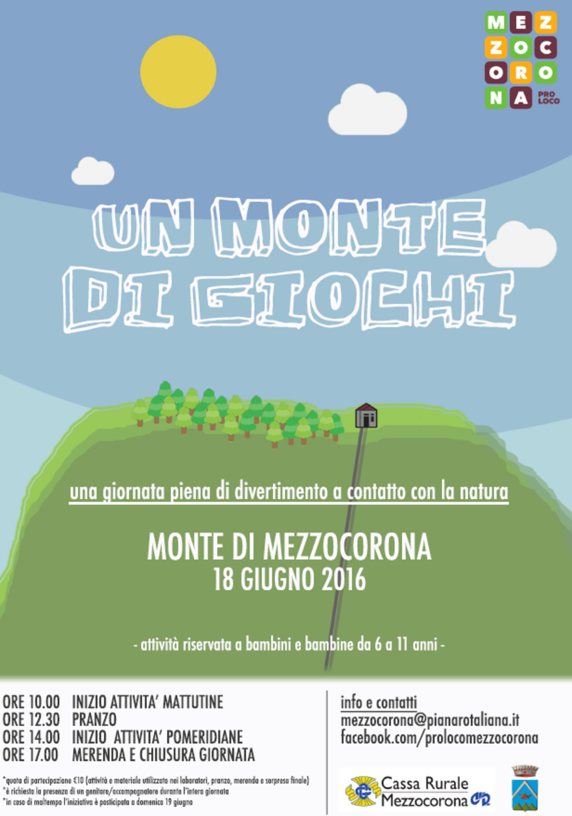 Giornata al Monte di Mezzocorona, dedicata ai più piccoli proposta da Pro loco Mezzocorona con la collaborazione delle associazioni del territorio e della biblioteca.