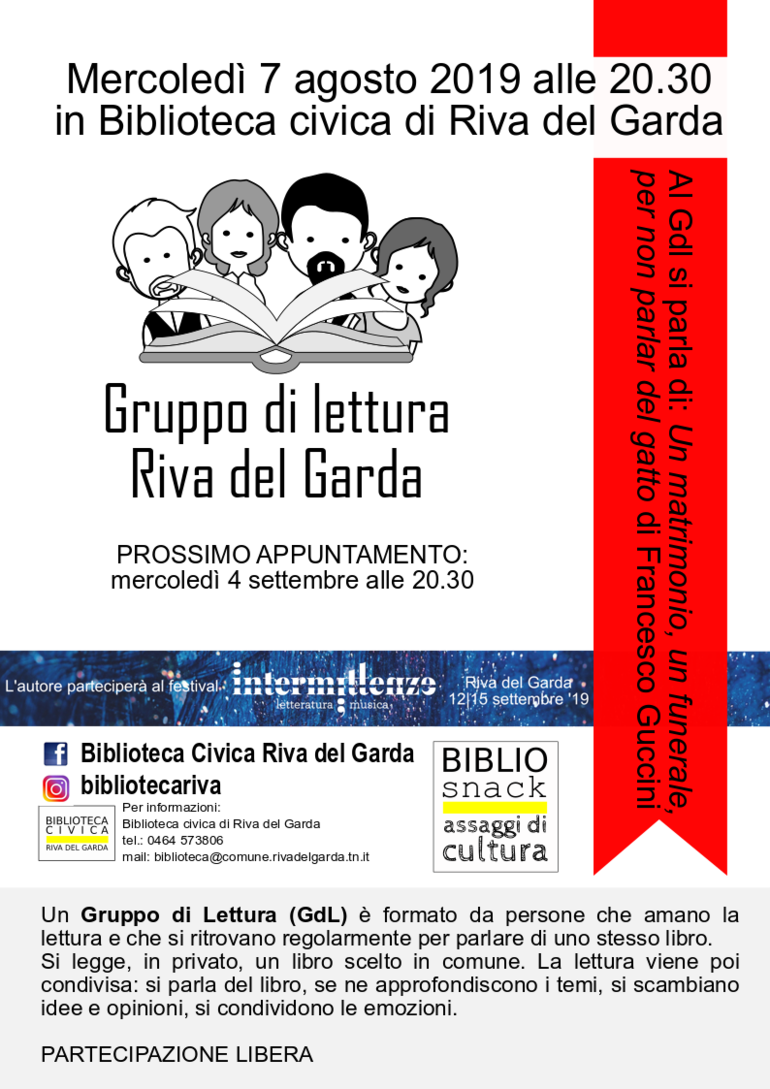 Il Gdl di Riva del Garda nasce per iniziativa della biblioteca civica nella primavera 2019 riscontrando subito forte interesse e partecipazione attiva da parte dei partecipanti.