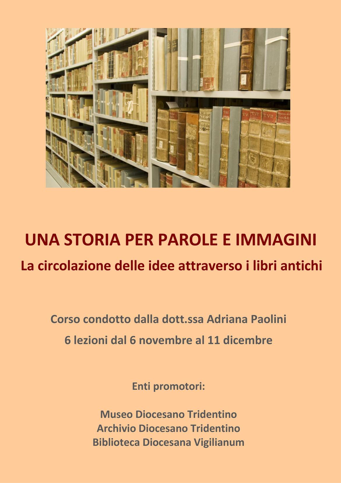 Prenderà il via lunedì 6 novembre il corso Una storia per parole e immagini. La circolazione delle idee attraverso i libri antichi, un'iniziativa organizzata e promossa in rete da tre importanti realtà culturali del territorio: Museo Diocesano Tridentino, Archivio Diocesano Tridentino e Biblioteca Diocesana Vigilianum. Dopo il successo delle passate edizioni, l’appuntamento del 2017 intende ripetere il ‘viaggio’ alla scoperta dei tre fondi librari, proponendo però una formula diversa, che avrà come filo conduttore la storia del libro quale strumento principale della circolazione delle idee. Partendo dalla nascita delle prime biblioteche e passando attraverso il rapporto tra testo e immagine, il percorso si concluderà con un approfondimento sul ruolo giocato dal libro nella Riforma protestante, di cui nel 2017 si ricorda il 500° anniversario. La Riforma protestante, il Concilio di Trento e la Controriforma cattolica sono in stretto rapporto con la storia del libro, poiché ancora una volta le nuove idee trovano nella crescente circolazione libraria un prezioso strumento di propaganda e diffusione.