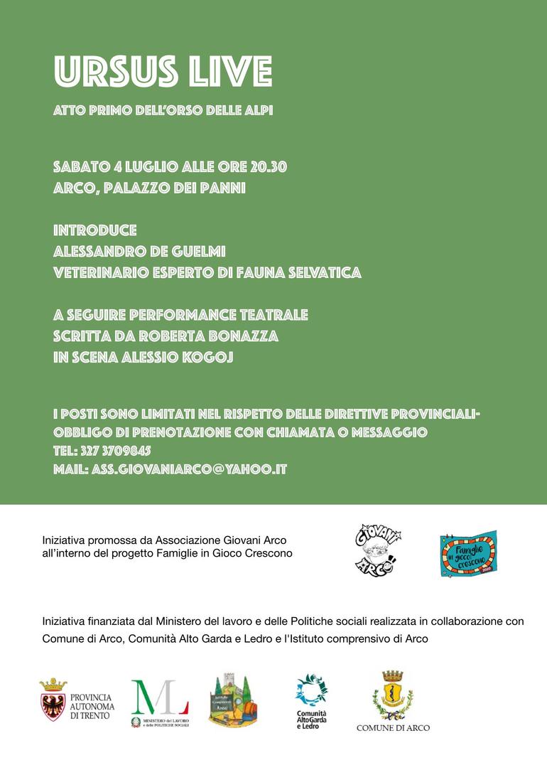 L'Associazione Giovani Arco "Famiglie in gioco crescono" presenta il progetto intitolato "Ursus live".