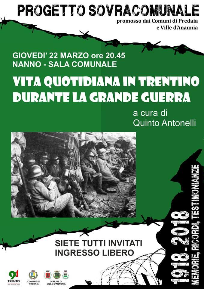 Progetto sovracomunale 1918-2018. Memorie, ricordi, testimonianze promosso dai comuni di Predaia e Ville d'Anaunia
