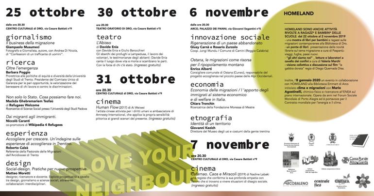 Progetto culturale curato dall'Ufficio Biblioteca Attività culturali e Progetti speciali del Comune di Dro che ha come obiettivo il superamento degli stereotipi e delle fake news sul tema delle migrazioni, avvalendosi di contributi di design, ricerca, cinema, teatro, economia, esperienze, geopolitica, etnografia, giornalismo e innovazione sociale.