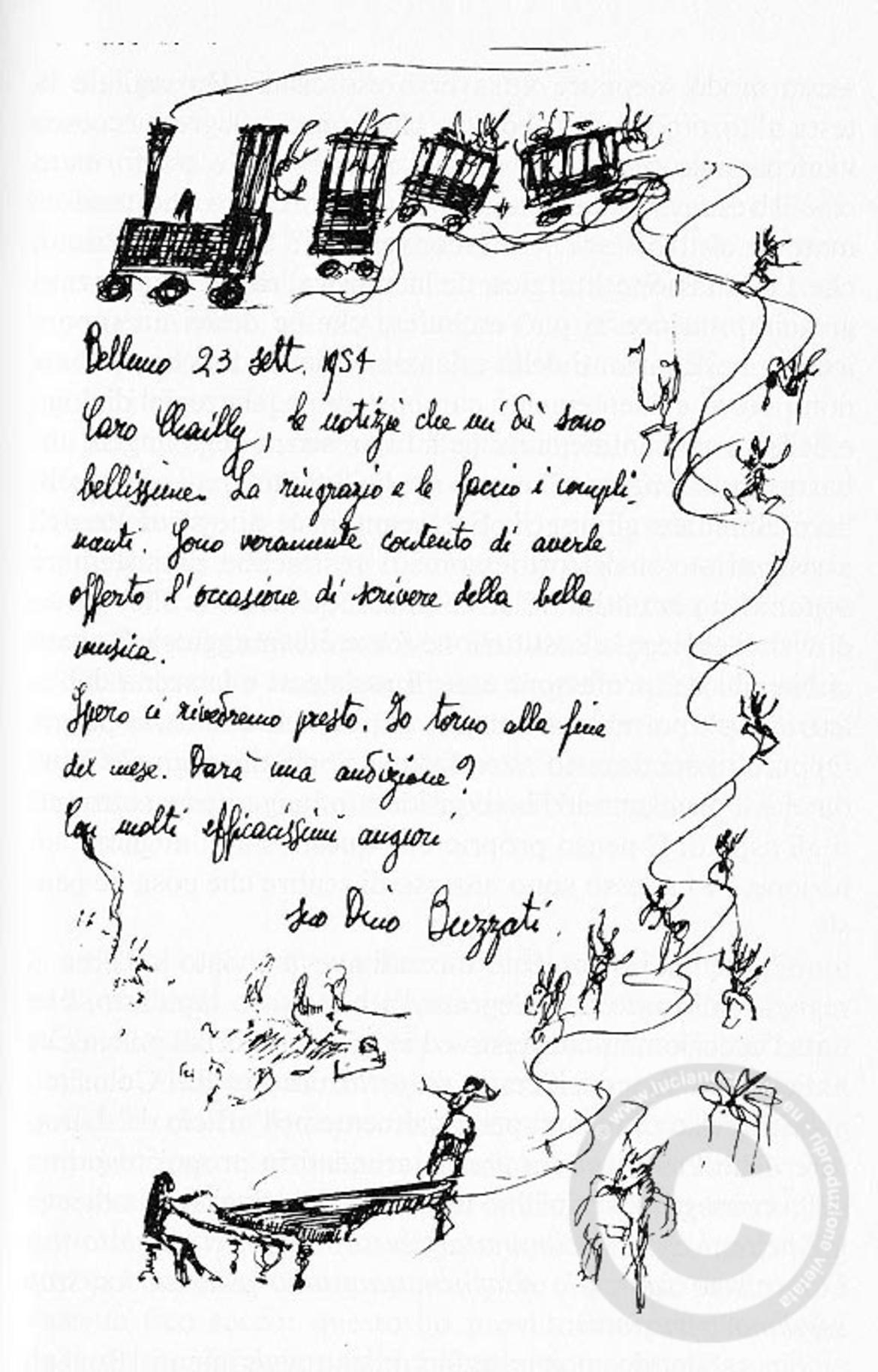 Il connubio con lo scrittore bellunese sarebbe proseguito per un decennio con le opere Procedura penale, Il mantello, Era Proibito, con il balletto Fantasmi al Grand Hotel, con le musiche di scena per lo spettacolo Drammatica fine di un noto musicista e con una canzone da cabaret per Laura Betti, La morticina.