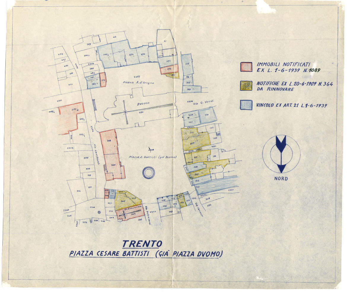 Estratto mappa della zona di rispetto del Duomo di Trento (1950)
