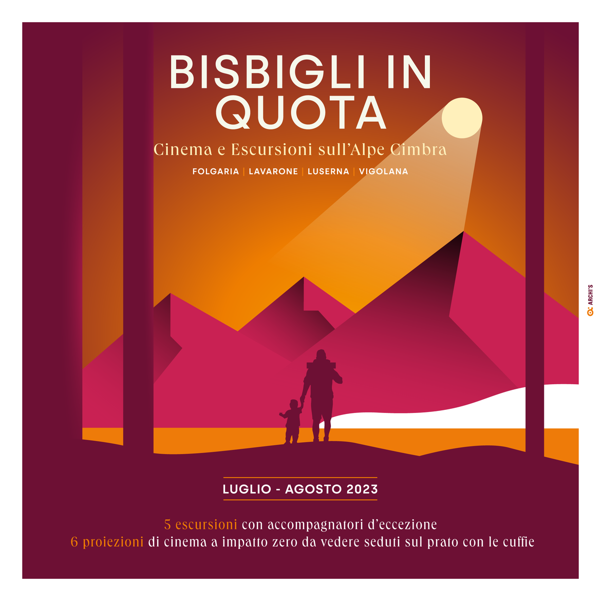 Bisbigli in quota vuole far scoprire l’Alpe Cimbra in un'ottica di turismo sostenibile attraverso un progetto che unisce escursioni con accompagnatori d’eccezione che offrono sguardi diversi sulla natura e la montagna lungo i sentieri più caratteristici dell’Alpe e proiezioni a impatto zero al margine dei boschi per riflettere sulle tematiche del rapporto uomo-ambiente.