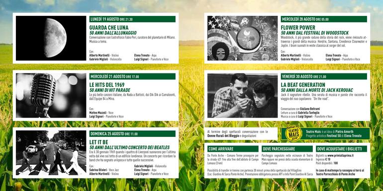 La location è davvero unica: la distesa di campi coltivati a mais che caratterizza il Piano Lomaso nel Comune di Comano Terme. Di qui il titolo della rassegna che dal 19 al 30 agosto proporrà cinque incontri di musica, scienza e letteratura dedicati di eventi datati 1969 che hanno cambiato il mondo.