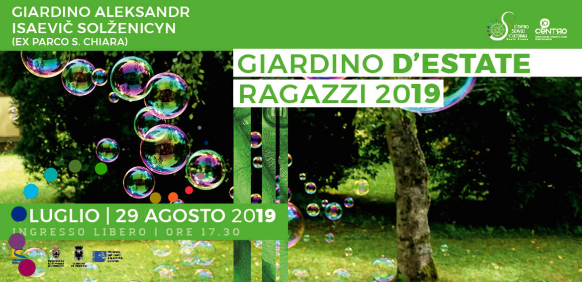 Tra le tante proposte programmate dal Centro Servizi Culturali S. Chiara per l’estate 2019 non poteva certo mancare l’offerta dedicata al pubblico dei più piccoli. Si rinnova così l’appuntamento con il GIARDINO D’ESTATE RAGAZZI, che dal 4 luglio al 29 agosto ospiterà otto compagnie nazionali nella cornice del Giardino Aleksandr Isaevič Solženicyn (ex