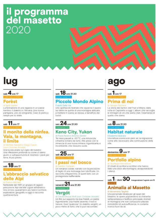 Sabato 4 luglio, inaugura la stagione culturale 2020 del Masetto. Un andirivieni tra luoghi, tempi, ambiti, interessi, e temi molto diversi fra loro. Nel corso dell’estate il Masetto darà vita a una sorta di passeggiata tra le discipline, svagata e curiosa, muovendosi tra narrativa, teatro, musica, arte e cinema.