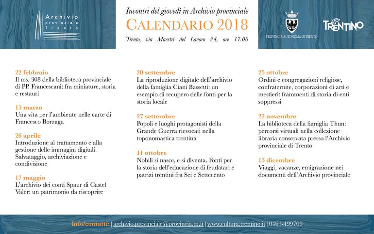 Incontri del giovedì in Archivio Provinciale 2018