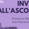 La Filarmonica anche nel 2022 inserisce, all’interno del corso istituzionale, due cicli di concerti di cinque appuntamenti ciascuno. In questi appuntamenti le riflessioni teoriche e gli ascolti proposti attraverso tracce audio e video durante le normali lezioni trovano riscontro diretto con strumenti ed esecutori ‘dal vivo’ in un dialogo piano e scorrevole, ma vivace e imprevedibile condotto dal Direttore artistico. Ognuno degli incontri d’ascolto guidato concorre ad allargare il panorama delle considerazioni linguistiche, del repertorio, dei generi, delle conversazioni avviate e condotte durante l’anno accademico.
