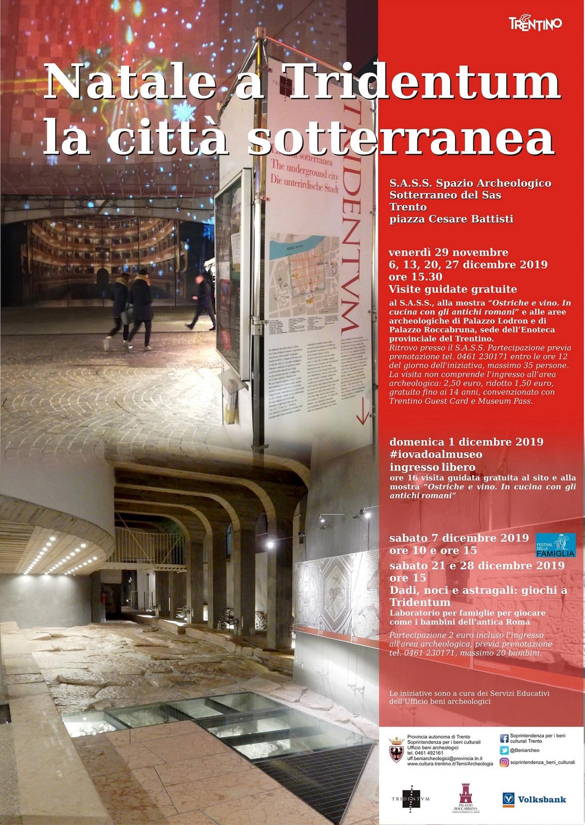 Tornano, in occasione del Mercatino di Natale di Trento, le visite guidate a Tridentum la città sotterranea e i laboratori per famiglie. Una proposta per scoprire il volto più antico della città, ricco di storia e suggestione