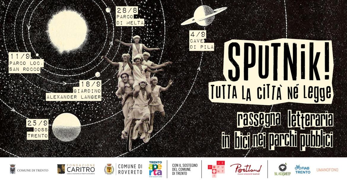 Sputnik! è un piccolo festival della lettura che incrocia libri, reading e uso creativo dello spazio pubblico e si svolgerà in cinque parchi cittadini per altrettanti sabati mattina di fine estate: il parco di Melta, le Cave di Pila, il parco in Località San Rocco, il giardino Alexander Langer e il parco sul Doss Trento.