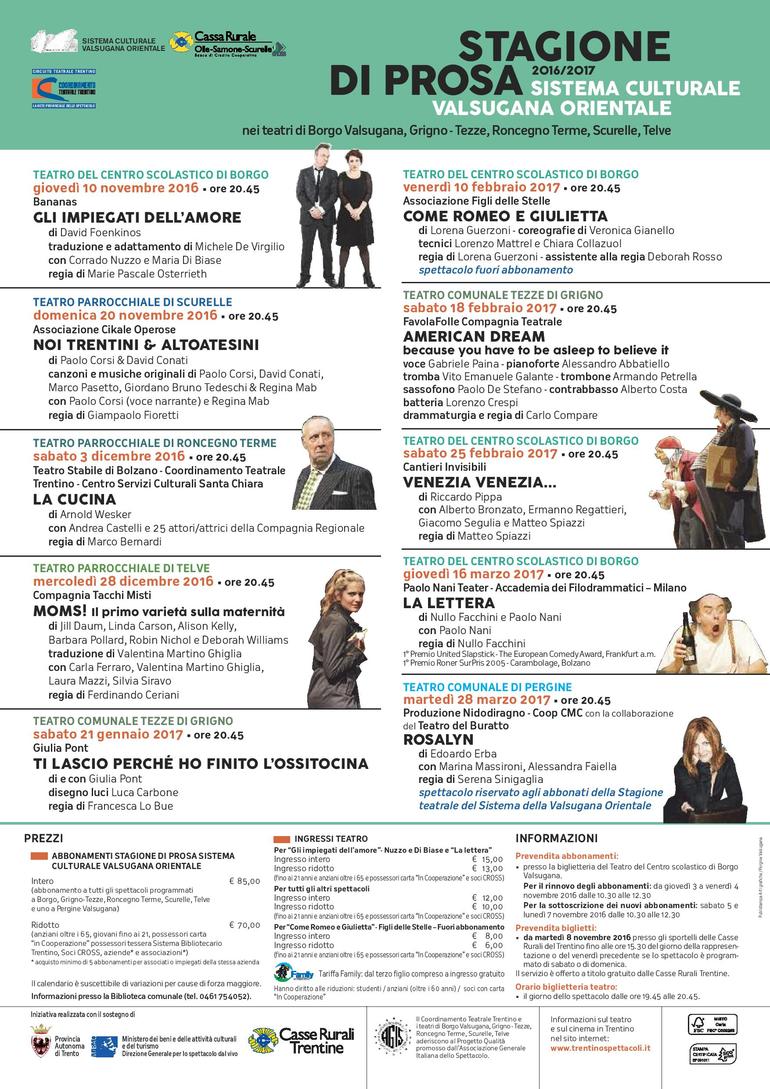 Stagione di Prosa 2016 - 2017 della Valsugana Orientale
