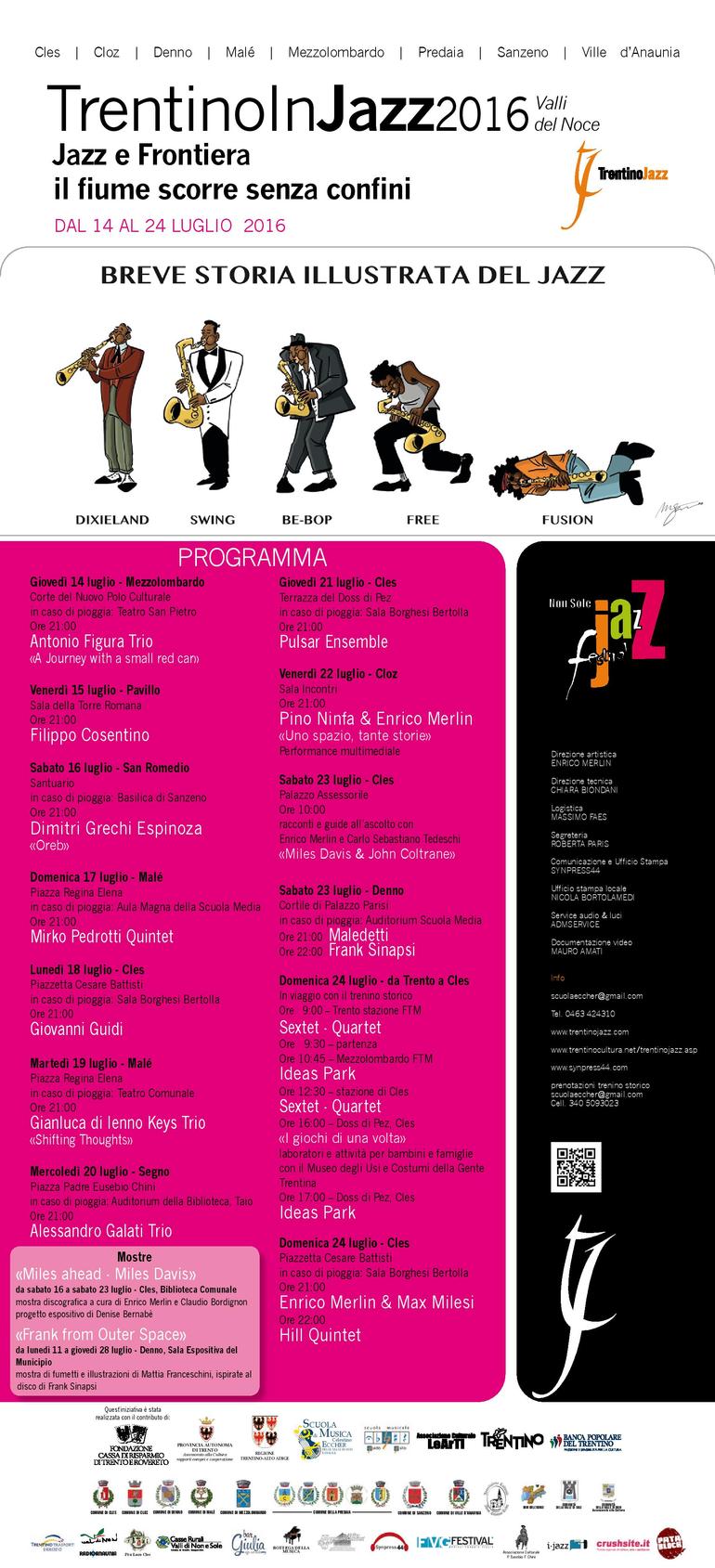 Questo dovrebbe essere il Jazz oggi, non la musica priva di vita, bacheca autoreferenziale di stilemi triti e ritriti dai contorni muffiti, che spesso viene spacciata come il verbo nella maggior parte delle rassegne nazionali e internazionali. Questo cerca di raccontare il Nostro Festival dopo 13 anni di attività, ancora una volta puntando esclusivamente sugli artisti italiani, a testimonianza di quanto la nostra scena sia appunto particolarmente attiva. Essere musicista e contemporaneamente direttore artistico di un Festival non è impresa facile, a volte anzi è piuttosto frustrante... Si vive la situazione con pienezza, su due fronti che talvolta sembrano contrapposti anziché necessari per la sopravvivenza reciproca. Ma è anche un'esperienza straordinaria e di questo ringrazio tutti gli artisti e tutti voi del pubblico, che in questi anni ci avete sostenuto e che ci aspettate come ogni anno a luglio nelle Valli del Noce, in Trentino.