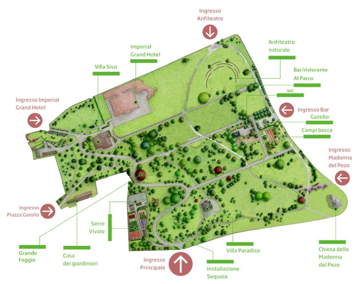 Il Parco è aperto tutto l’anno e conserva ancora il fascino di un luogo speciale per le storiche alberature, vestite di fronde fino al livello del terreno che sono cresciute liberamente in mezzo ai prati. In primavera si apprezzano le fioriture di arbusti come diverse specie di rose, gelsomini, viburni, cornioli ornamentali, spiree glicini e clematis.