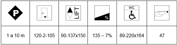 The indicated parking space is located in Piazza San Giuseppe, a limited traffic zone (ZTL), where vehicles are allowed to enter only with special permits (i.e. disabled parking card). Passing through an always open 254 cm wide portal, visitors enter an uneven cobbled courtyard with 50 cm wide lanes made of smooth stone. The Library is on the 1st floor and can be accessed thorugh a 128 cm wide entrance door, followed by the ramp indicated above. The borrowing counter is 74 cm high. There are large space between the tables (net passage width: 69/74 cm). The tables have different heights (74/75 cm) and some of them are fitted with wheels. On this floor, there is a PC placement; further PC desks are located on the mezzanine level below, not served by lift. The wheelchair accessible toilet is provided with grab bars on both sides of the wc, open-front toilet seat (9 cm high), further vertical grab bars, back flush button, emergency call system, accessible wash basin amd adjustable tilting mirror.