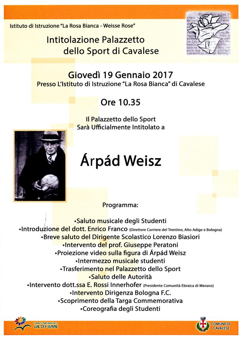Ceremony organised to name the Sports arena of Cavalese after Arpad Weisz