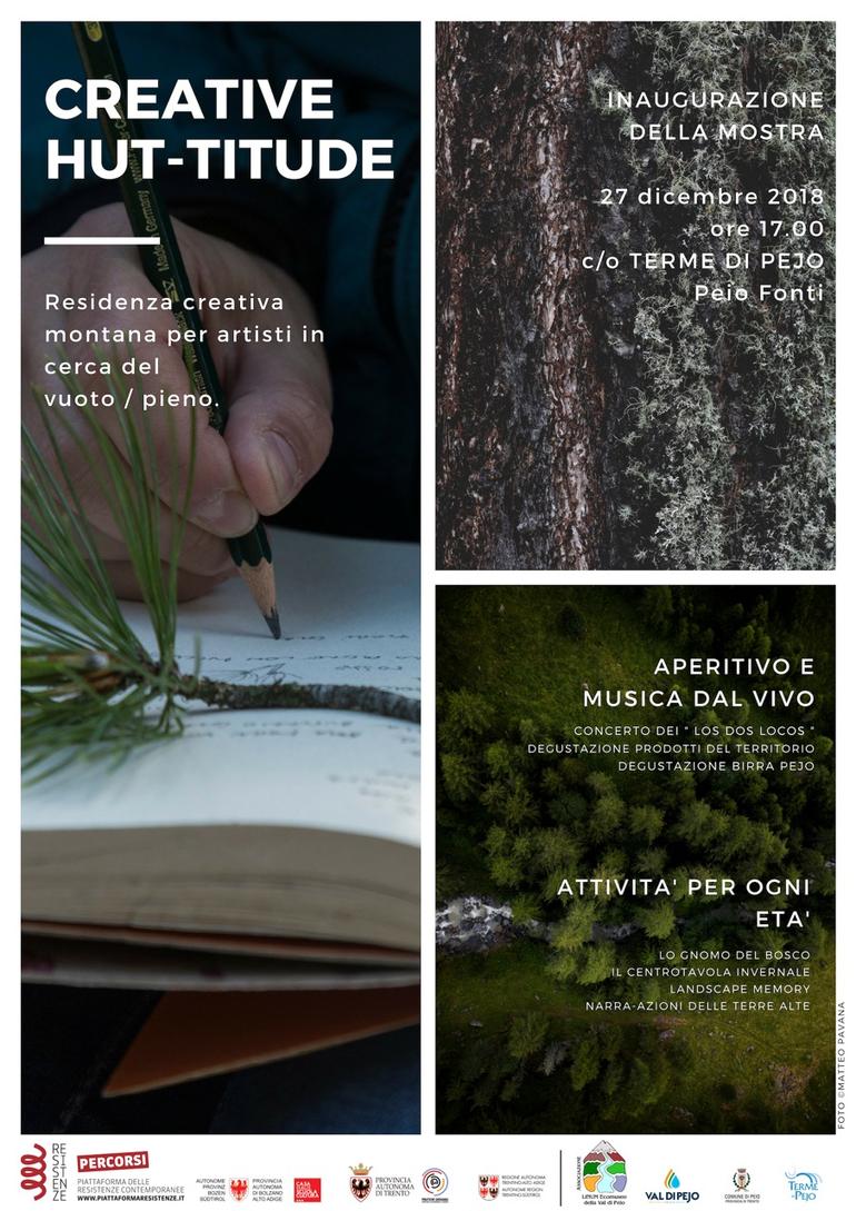 Vi aspettiamo a Peio Fonti presso il foyer delle Terme di Pejo per l’inaugurazione della mostra del progetto Creative Hut-titude: trenta le opere realizzate da fotografi, scrittori e illustratori!